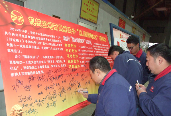 12月4日下午,機(jī)械公司黨支部在鉚焊工段廠房?jī)?nèi)開展“12.4憲法日”主題教育,全體職工參加學(xué)習(xí)。