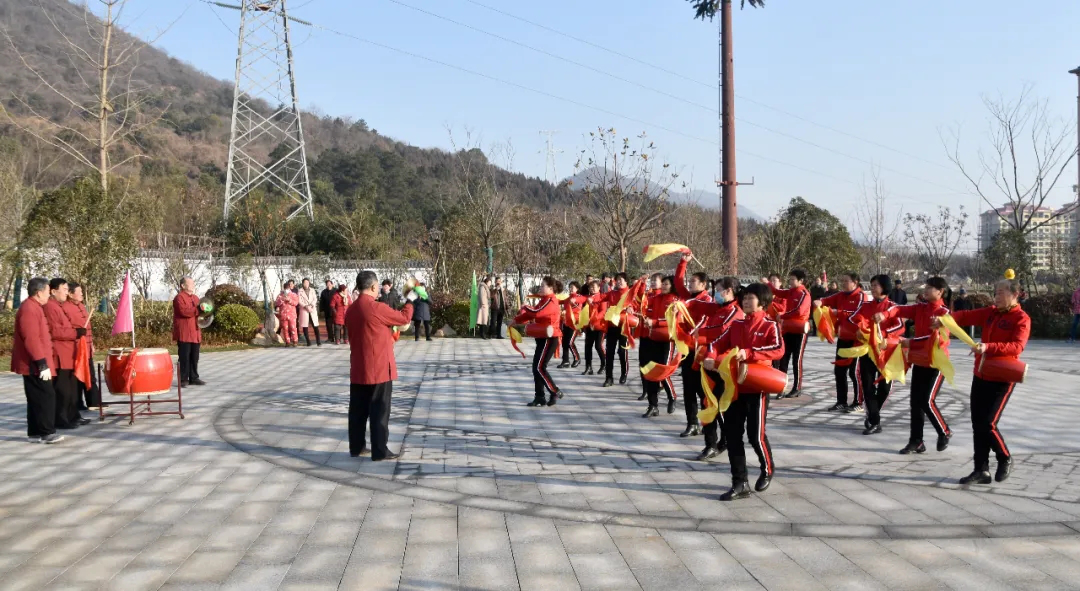 (圖為皖維西生活區(qū)新建的桂花公園內(nèi),腰鼓隊(duì)載歌載舞)