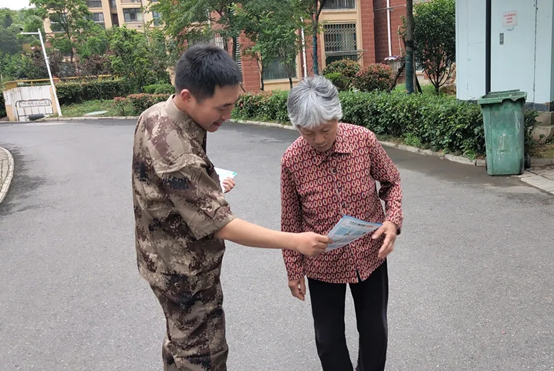 (圖為保衛(wèi)處黨支部在生活區(qū)向住戶宣傳防網(wǎng)絡(luò)詐騙知識(shí))