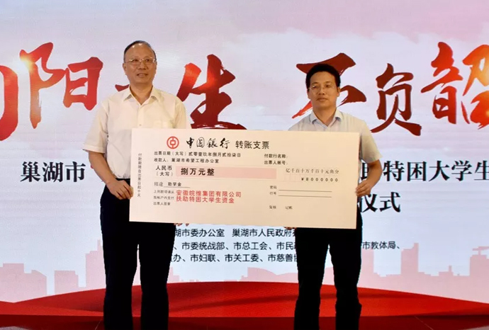 8月27日下午,以“向陽(yáng)而生、不負(fù)韶華”為主題的“愛心圓夢(mèng)大學(xué)”2019年扶助特困大學(xué)生工作總結(jié)會(huì)暨助學(xué)金發(fā)放儀式在市行政會(huì)務(wù)中心第會(huì)議室舉行。集團(tuán)公司黨委副書記張正和代表皖維出席。