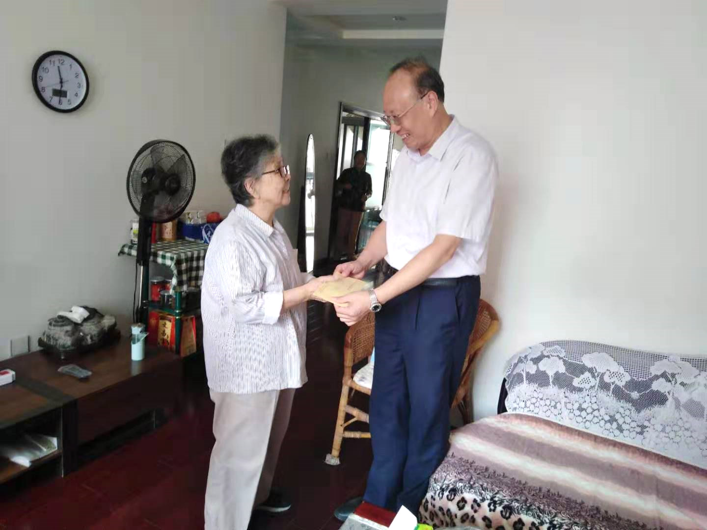 9月29日上午,集團公司黨委副書記張正和帶社區(qū)、黨委工作部有關(guān)同志驅(qū)車前往合肥,專程上門慰問在新中國成立前參加革命工作的老干部、老黨員。9月30日上午,張正和又來到居住在皖維社區(qū)和巢湖市的老干部、老黨員家中看望慰問,并送上慰問金。