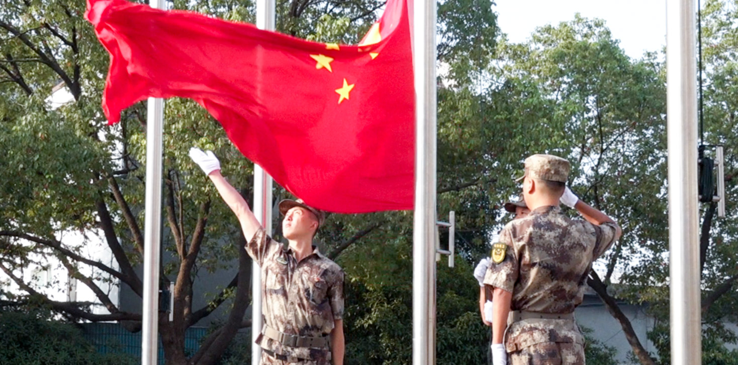 ? 隨著鮮艷的名族大旗緩緩升起,全體人員行注目禮,并伴著音樂高唱國歌:“起來,不愿做奴隸的人們,把我們血肉筑成我們新的長城……”