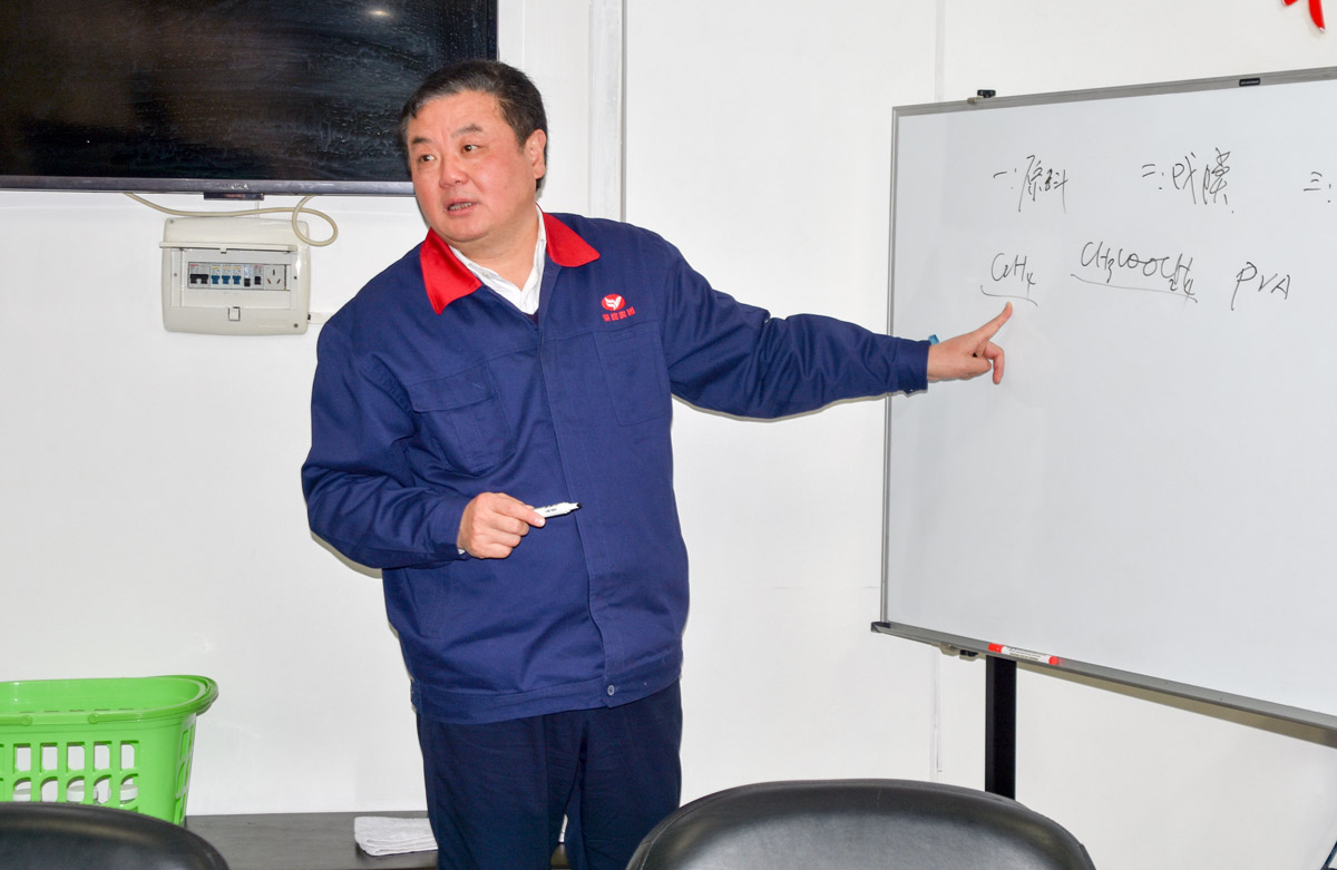 會后,葉傳柏前往PVA膜分廠,實地察看了產(chǎn)品生產(chǎn)過程。