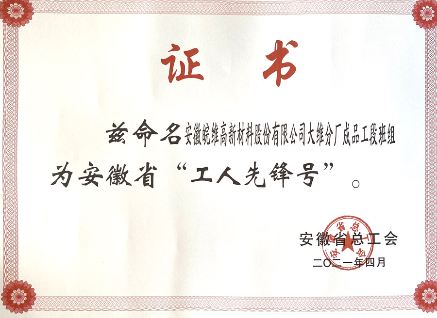 近日,安徽省總工會對2020年度安徽省勞動競賽先進集體和先進個人進行表彰,公司大維分廠成品工段班組獲得“安徽省工人先鋒號”榮譽,為公司再添佳績。
