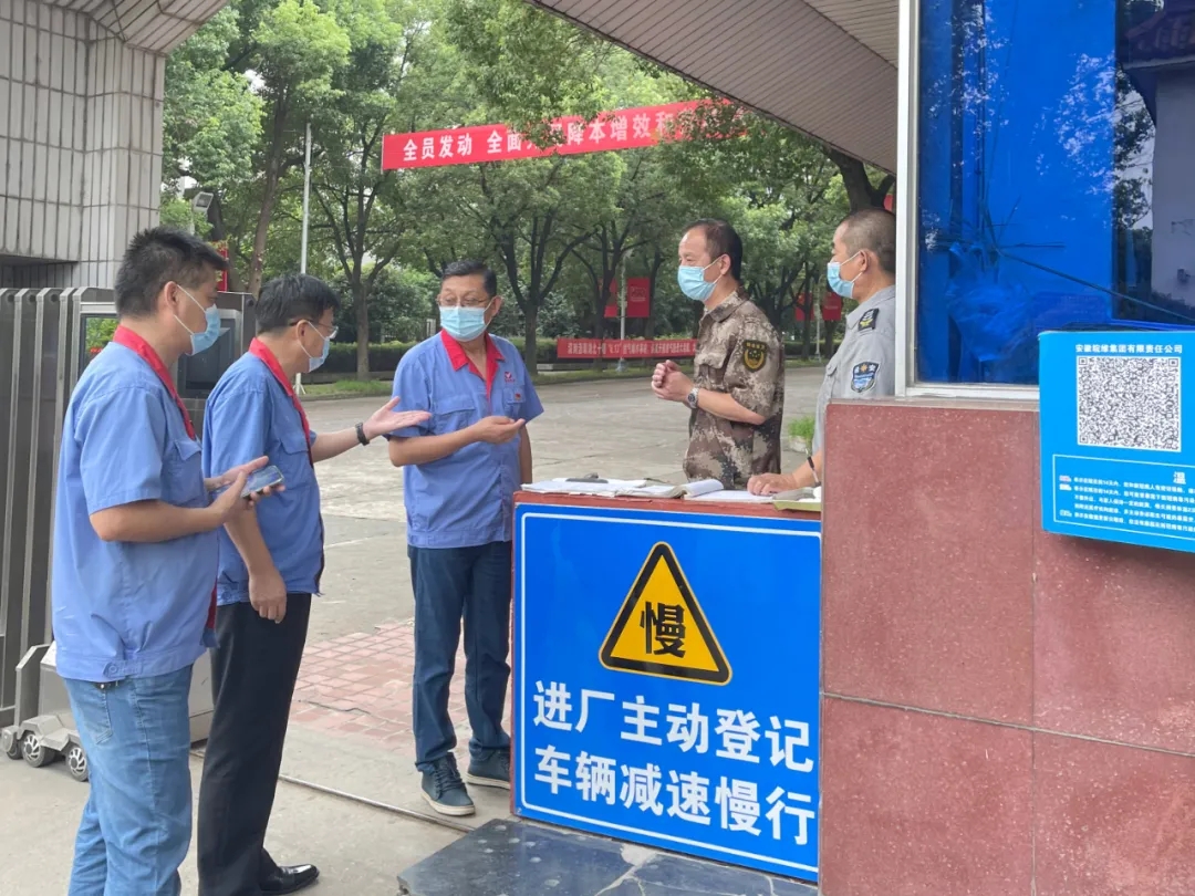 ? 督查組首先來到公司大門崗,詢問了進出門崗人員管理情況,查看了測溫安檢門,仔細翻閱了進出廠人員登記表,重點詢問了安康碼綠碼查驗、體溫測量及口罩佩戴等情況。當(dāng)?shù)弥緸榧訌婇T崗疫情防控工作,從分廠抽調(diào)兩名職工進行協(xié)助時,余明祥表示認可;同時要求抽調(diào)人員要佩戴袖章上崗,主動亮明身份,嚴格執(zhí)行公司疫情防控管理規(guī)定,和門崗的同志們共同守護好皖維的“大門”。