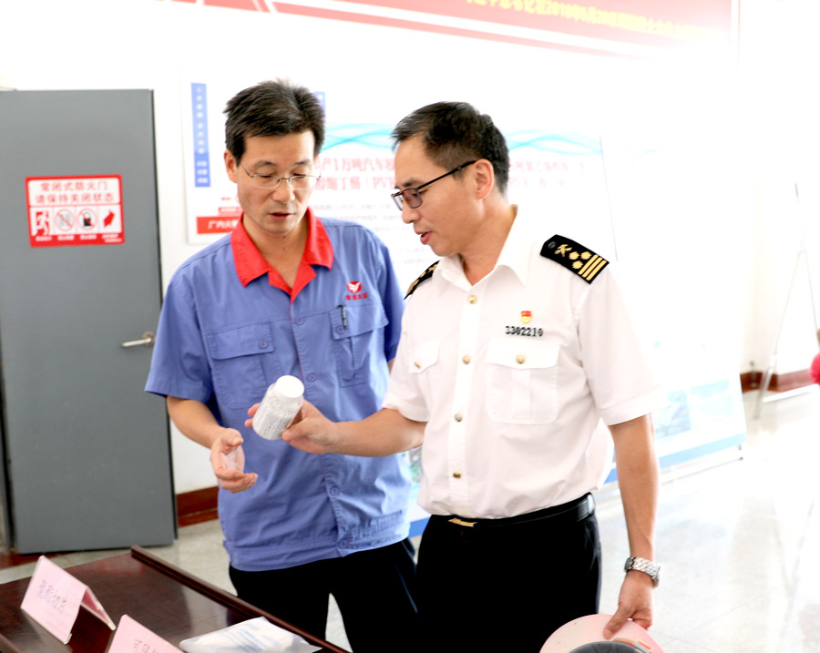 ? 9月8日上午,合肥廬州海關(guān)副關(guān)長查成林、監(jiān)管二科科長黃偉和監(jiān)管科員陳燕一行來皖維調(diào)研。孫先武、吳霖、潘曉明和國際貿(mào)易部負責(zé)人熱情接待查成林一行,并陪同前往PVA膜、大維分廠生產(chǎn)現(xiàn)場了解生產(chǎn)線的運行情況。