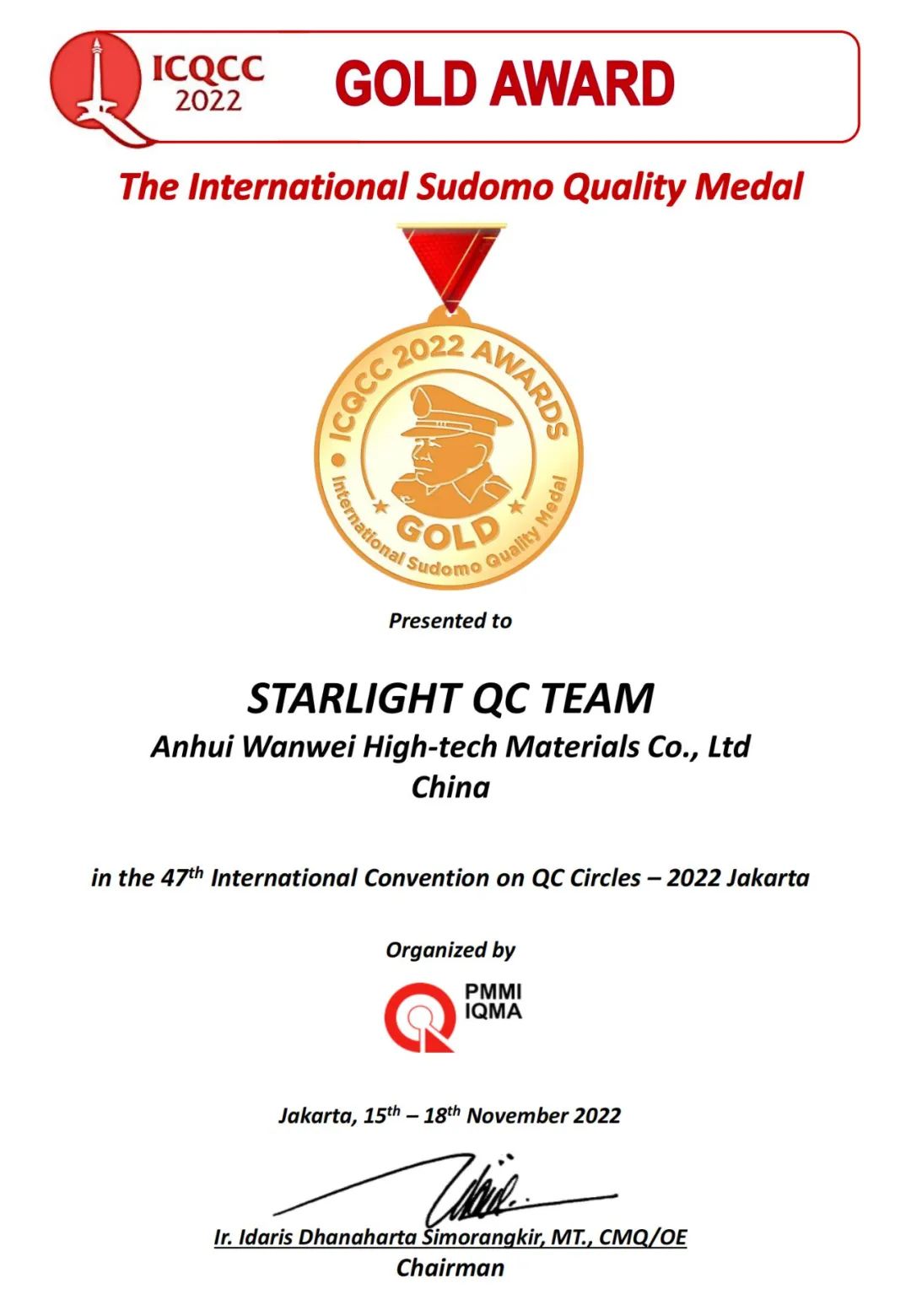 近日,第47屆國際質(zhì)量管理小組(ICQCC)大賽在印尼首都雅加達召開。來自全球國家和地區(qū)的800個代表隊參與成果發(fā)表和交流,公司有機分廠啟明星QC小組的成果《提高膜級PVA的優(yōu)級品率》在激烈競爭中脫穎而出,榮獲最高獎項—金獎榮譽。