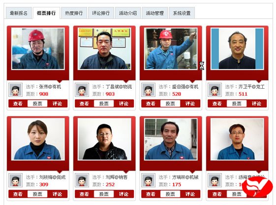在得票榜中,機(jī)械設(shè)備公司方瑞林闖入前8名,大有后發(fā)制人之勢(shì);在人氣榜中,制成分廠楊紹文也挺前8強(qiáng),實(shí)屬不易。