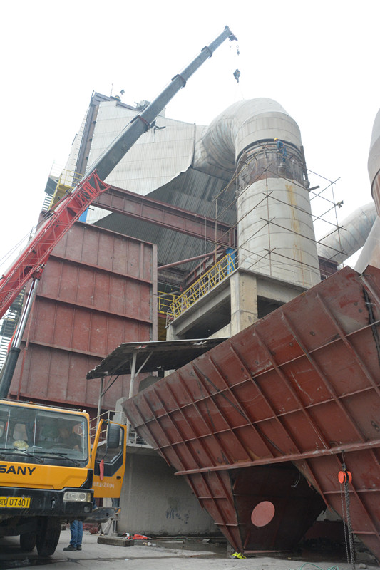 對(duì)全廠設(shè)備進(jìn)行次檢修保養(yǎng)。圖為電收塵改造現(xiàn)場(chǎng)