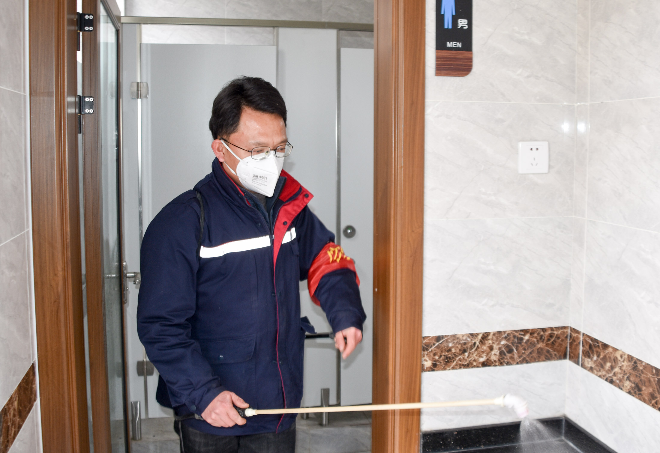 (王健在社區(qū)公園廁所消毒)