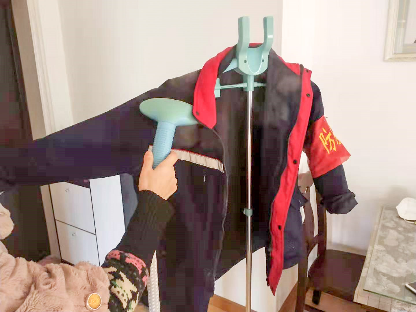 (妻子幫王健衣服消毒)