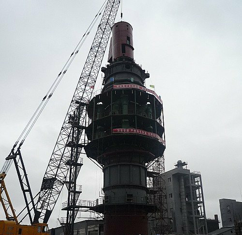 8月15日,蒙維公司日產(chǎn)500噸氣燒石灰窯窯體后節(jié)順利吊裝成功。