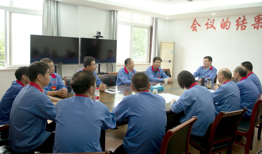在9月26日中午皖維高新首要次黨代會代表分組討論期間,黨委書記、董事長吳福勝先后來到來自廣西皖維公司的第七代表組和來自蒙維科技公司的第八代表組,看望兩個外埠子公司的代表,并參加兩個代表組的討論。