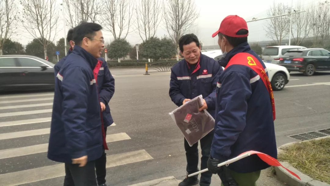 5日上午一上班,唐成宏與黨委工作部、PVA膜分廠、德瑞格公司相關(guān)負(fù)責(zé)人到巢柘路段,慰問正在值勤的志愿者們,為他們送上了圍巾與保溫杯,傳遞著黨組織對(duì)他們的一份關(guān)心。