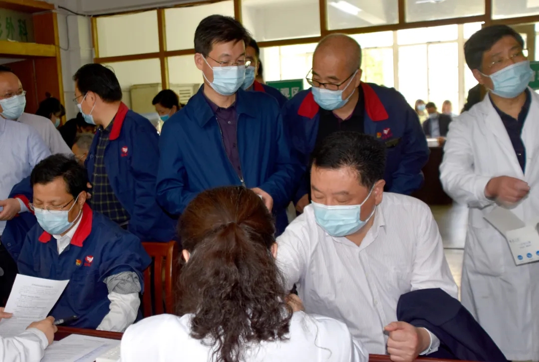5月1日上午,皖維醫(yī)院里井然有序地排著長(zhǎng)隊(duì),在全體勞動(dòng)者的節(jié)日里,公司各崗位的勞動(dòng)者們正接受體檢,根據(jù)身體情況接種新冠疫苗。吳福勝、張正和、劉幫柱、孫先武、朱中華等領(lǐng)導(dǎo)帶頭接種新冠疫苗,以實(shí)際行動(dòng)為接種工作做出表率。