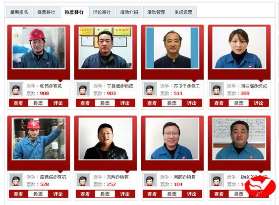 在得票榜中,機(jī)械設(shè)備公司方瑞林闖入前8名,大有后發(fā)制人之勢(shì);在人氣榜中,制成分廠楊紹文也挺前8強(qiáng),實(shí)屬不易。